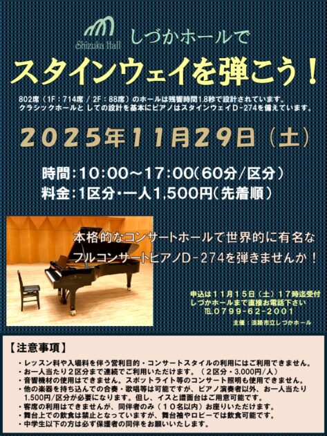 「しづかホールでスタインウェイを弾こう!」を掲載しました